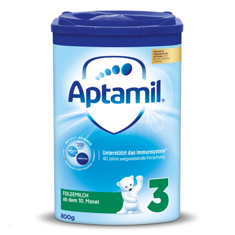 Aptamil 3 é um leite de transição, indicado para bebés a partir dos 9 meses.
