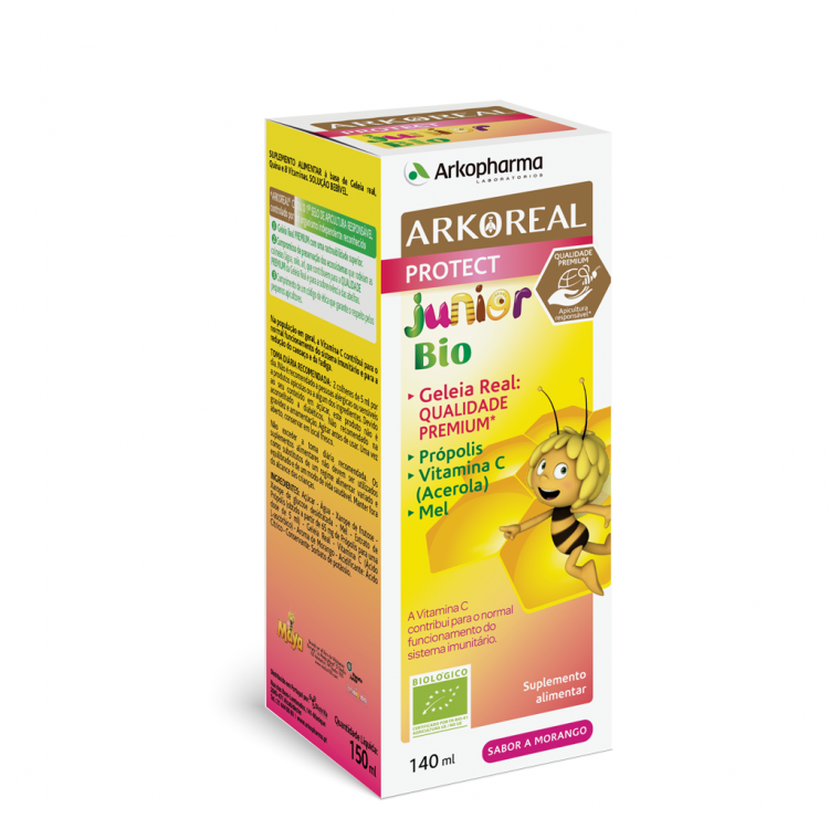 ARKOREAL® Xarope Protect Junior é um suplemento alimentar à base de Geleia real, Acerola, Própolis e Mel. Solução bebível. Na população em geral, a vitamina C contribui para o normal funcionamento do sistema imunitário para a redução do cansaço e da fadiga.
