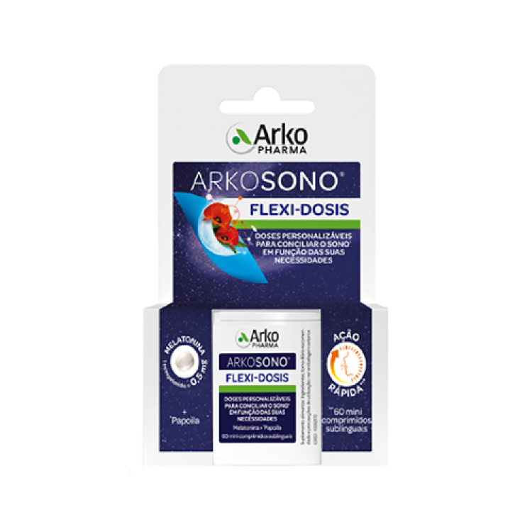 Arkosono® FLEXI-DOSIS é composto por comprimidos sub-linguais que contêm mini doses de Melatonina e Papoila, oferecendo uma solução para os problemas de sono, personalizada às necessidades específicas de cada um. A fórmula à base de Papoila, que contribui para o relaxamento e sono, é reforçada com 0,5mg de Melatonina por comprimido. Pode adaptar a toma entre 1 a 3 comprimidos, dependendo das suas necessidades e do seu ritmo de vida (diferença horária, dificuldade em adormecer, despertar noturno). Os mini comprimidos além de muito práticos, por se dissolverem sob a língua, permitem uma absorção imediata dos ativos, promovendo uma rápida ação.