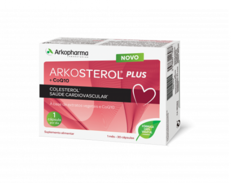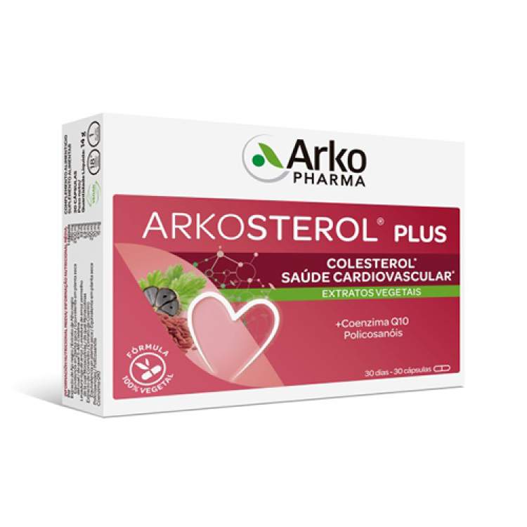 ARKOSTEROL® Plus é um suplemento alimentar à base de Policosanóis, Coenzima Q10, Levedura de arroz vermelho e extratos de Alho negro e Coentro. O Alho negro e o Coentro contribuem para a manutenção de níveis normais de colesterol e para o bem-estar cardiovascular.