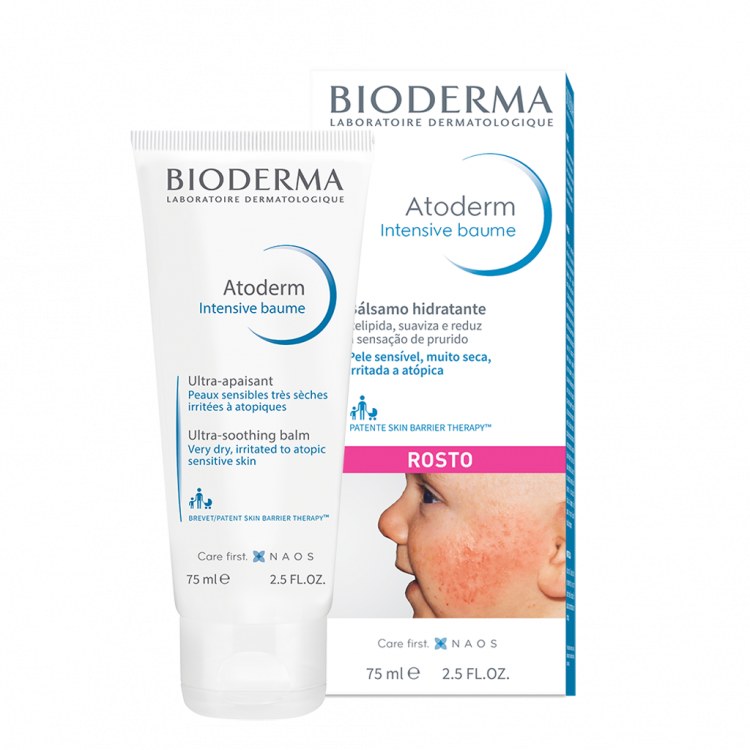 Cuidado diário da pele atópica. ROSTO. MODO DE EMPREGO Aplicar 1 a 2 vezes por dia na pele previamente limpa com Atoderm Intensive Gel moussant ou Atoderm Intensive Pain. Em monoterapia ou associado à corticoterapia.