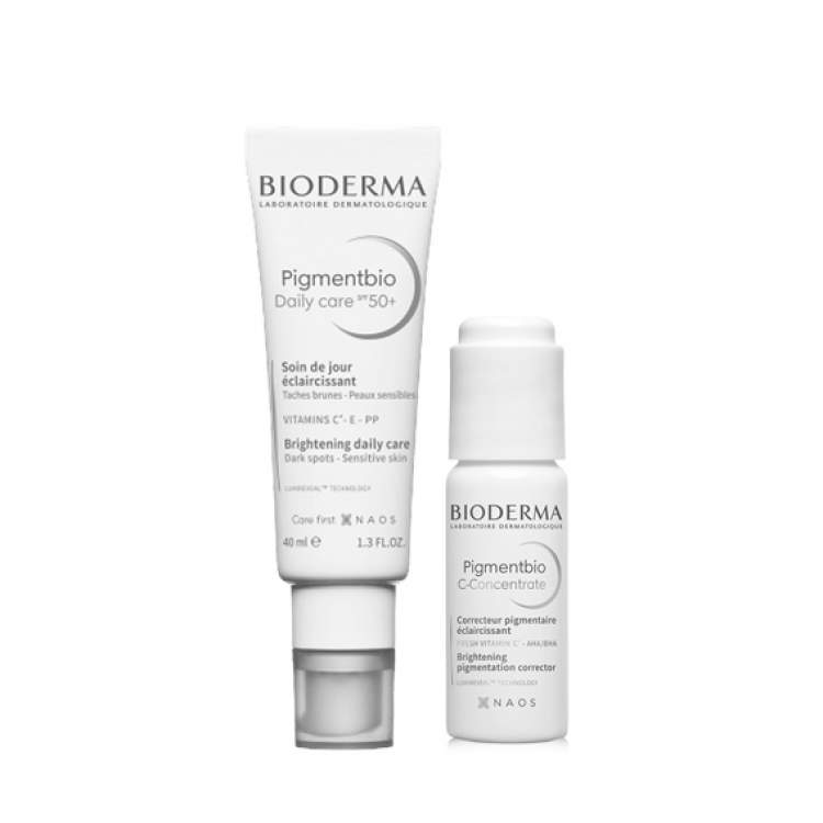 Bioderma PigmentBio SPF50+ Creme é um creme de dia, de dupla ação anti-manchas, corretor e preventivo, com proteção solar muito elevada, que ajuda a atenuar as manchas, uniformizar a tez e proteger a pele. Com vitaminas C e E e filtros anti-UVA/UVB, para uma ação corretora, antioxidante, anti-manchas, anti-idade, fortificante, protetora e suavizante. Hidrata suavemente, sem sensação oleosa. Estimula a regeneração celular natural. Limita a produção de melanina. Clareia e uniformiza a tez. Reduz as manchas e previne a formação de novas. Protege contra o envelhecimento precoce. Proteção solar muito elevada (FPS50+). Não bloqueia os poros. Ideal para todo o tipo de pele, com manchas. De elevada tolerância. Pele mais suave, uniforme e luminosa. Bioderma Pigmentbio Água Micelar é uma água micelar, que ajuda a limpar, desmaquilhar e iluminar o rosto, sem agredir. Combinação de ativos despigmentantes e micelas, para uma ação de limpeza suave, anti-manchas, purificante, iluminadora, protetora e suavizante. Limpa suavemente. Remove as impurezas e a maquilhagem. Tonifica e refresca a tez. Ilumina o tom da pele. Atenua a aparência das manchas. Previne o aparecimento das manchas. Prepara a pele para o cuidado hidratante. Respeita a barreira cutânea natural. Pode ser usado no rosto e contorno dos olhos. Ideal para todo o tipo de pele com manchas, mesmo a mais sensível. Pele limpa, suave e luminosa.