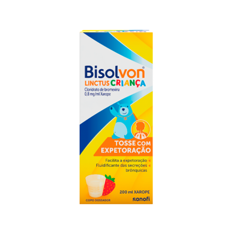 Bisolvon Linctus Criança, com aroma a morango, está indicado como adjuvante mucolítico do tratamento antibacteriano das infeções respiratórias em presença de hipersecreção brônquica.