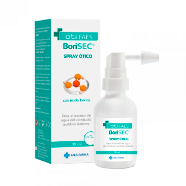 Spray ístico com ácido bórico para secar o excesso de água retido no canal auditivo.