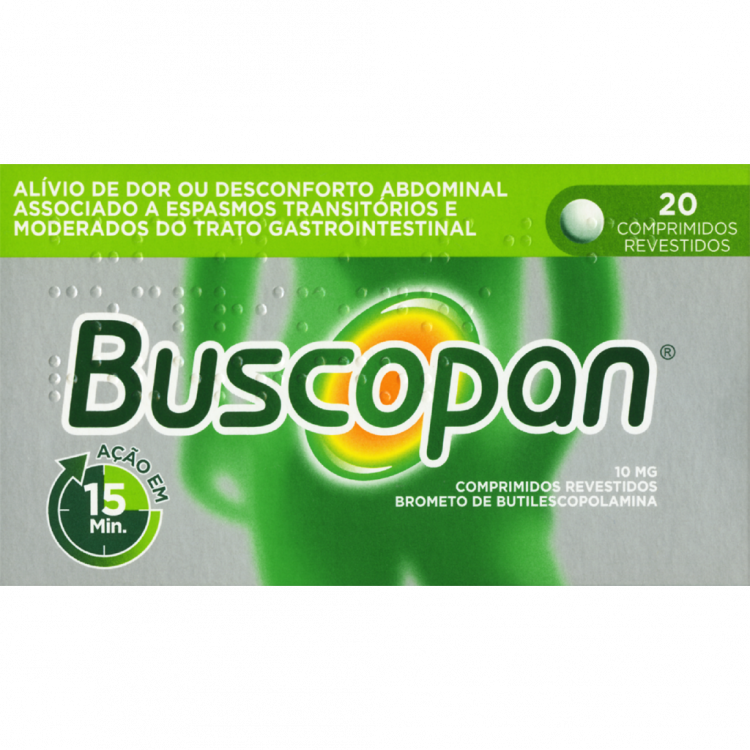Existem várias vantagens em tomar Buscopan® quando sente dor de barriga. Buscopan é uma marca de confiança, sendo utilizada há mais de 60 anos no tratamento da dor de barriga. Os analgésicos atuam reduzindo a sensação de dor através do bloqueio do sinal da dor, mascarando-a. Buscopan® atua diretamente onde a dor e os espasmos ocorrem e começa a fazer efeito 15 minutos após a toma. É bem tolerado e é mais eficaz quando tomado aos primeiros sinais de dor de barriga e desconforto. A dose habitual de Buscopan, para adultos e crianças com mais de 6 anos, é a seguinte: 1 a 2 comprimidos (10 a 20 mg), 3 a 5 vezes por dia. Se não se sentir melhor ou se piorar após 3 dias, tem de consultar um médico. Buscopan está disponível em embalagens de 20 e 40 comprimidos. Quando a dor pede mais, está disponível Buscopan Compositum N 20 comprimidos.
