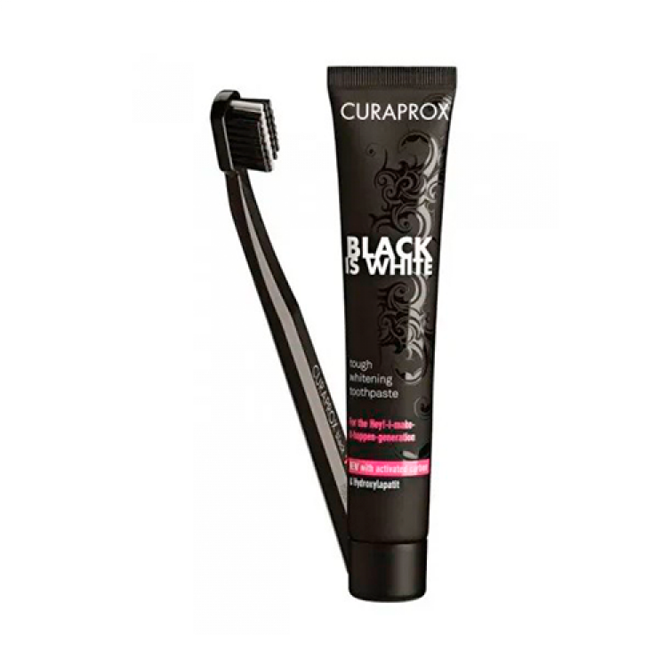 Black Is White é uma pasta de dentes branqueadora, com um sabor refrescante e cítrico, que aproveita as propriedades adsorventes do carvão ativado para a remoção de manchas à superfície do esmalte dentário, sem a utilização de agentes abrasivos ou branqueadores. Contém flúor e hidroxilapatite para a remineralização do esmalte dentário. Não contém Lauril Sulfato de Sódio (LSS) nem Triclosan.