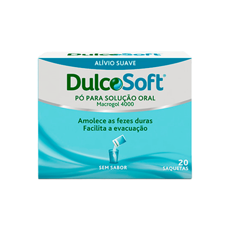 A prisão de ventre é normalmente caracterizada pela baixa frequência de evacuações. No entanto, se a massa fecal permanecer no cólon por um longo período, mais água poderá ser absorvida e as fezes tornar-se-ão duras e secas. O principal ingrediente de DulcoSoft é o Macrogol 4000, uma substância ativa osmótica. O Macrogol 4000 tem uma elevada capacidade de se ligar à água. Atua na hidratação das fezes, amolecendo-as e tornando a evacuação mais fácil e confortável. Assim, as fezes duras são amolecidas e o volume fecal aumenta. Isto leva a um aumento do movimento intestinal e facilita a defecação, proporcionando um alívio suave da prisão de ventre. DulcoSoft é utilizado para: •amolecer as fezes duras •facilitar a evacuação Tome sempre DulcoSoft exatamente como descrito no respetivo folheto de instruções. DulcoSoft® está disponível em duas formas de apresentação: líquido (solução oral 250ml), o qual pode ser indicado a crianças a partir dos 2 anos de idade; e em saquetas (pó para solução oral 10 gr, 20 saquetas), a partir dos 8 anos de idade.