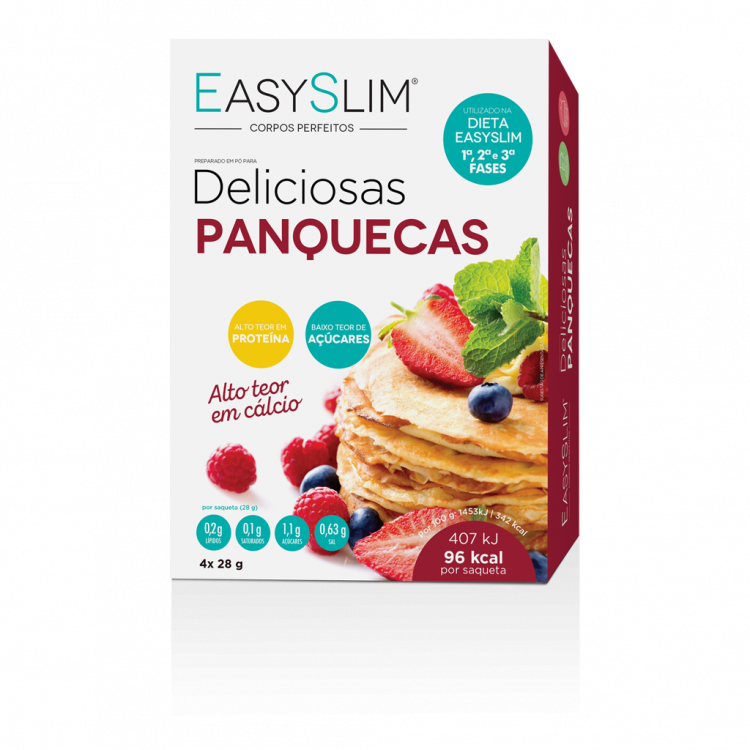 Easyslim Panquecas são panquecas de baixo valor calórico, alto teor de proteína e baixo teor de açúcares. Constitui uma opção leve, saudável e deliciosa para o pequeno-almoço, lanche da manhã ou da tarde.
