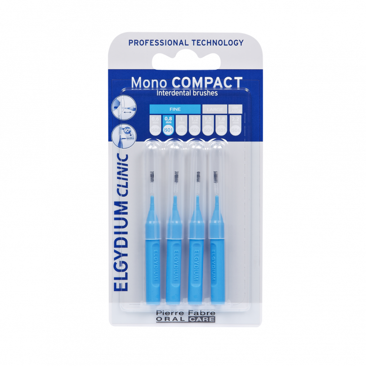 ELGYDIUM CLINIC ESCOVILHÕES MONO COMPACT são escovilhões concebidos para higienizar os espaços interdentários e impedir a formação de placa bacteriana entre os dentes. Como os espaços interdentários não são todos iguais, os escovilhões têm seis tamanhos, identificados por cores diferentes. Têm ainda cerdas bicolores: brancas para revelar as gengivas sensíveis em caso de sangramento, e pretas, mais finas, para facilitar a inserção da escova e visualizar a eliminação da placa bacteriana.
