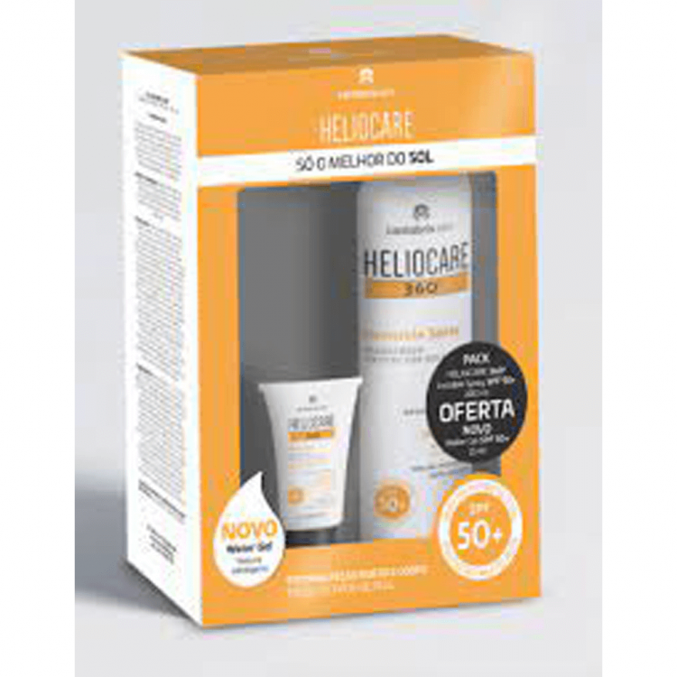 Heliocare 360° Invisible Spray SPF 50+: Garante um cuidado de 360° contra os 4 tipos de radiação que danificam a pele. É formulado com os inovadores filtros Fernblock®+, que inibem e reparam eficazmente os danos cutâneos, prevenindo o aparecimento de manchas, rugas e sinais de envelhecimento. Contém também a patente WET SKIN, que oferece um acabamento leve, refrescante e hipoalergénico. Heliocare 360º Water Gel SPF50+: É um gel fotoprotector hidratante com uma fórmula aquosa ultra-leve e não comedogénica que é rapidamente absorvida, deixando a pele hidratada e mantendo o seu conforto durante a exposição solar. O seu sistema hidratante de libertação de tempo mantém a pele hidratada desde o momento da aplicação. As suas características permitem uma utilização confortável e uma aplicação diária. É resistente à água e não pica os olhos. Pode ser utilizado em todos os tipos de pele, mesmo nos mais sensíveis. Com Fernblock®+, filtros específicos e ingredientes activos reparadores e antioxidantes, protege contra as 4 radiações (UVB, UVA, Visível e Infravermelho), neutraliza e repara os danos solares. Testado sob controlo dermatológico e oftalmológico.