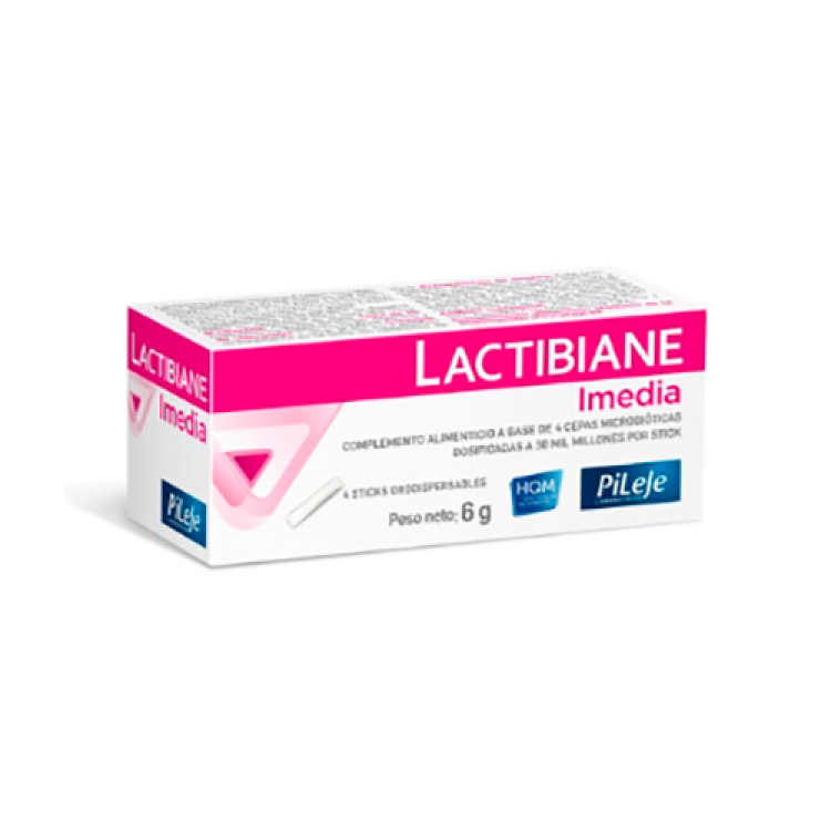 Lactibiane Pileje Imedia Pó Saquetas é um suplemento alimentar que ajuda a proteger a flora intestinal. Composto por 4 cepas microbióticas dosadas a 30 bilhões por barra orodispersível com adoçante. Lactibiane Imedia é composto por 4 cepas microbióticas: Bifidobacterium longum LA 101; Lactobacillus helveticus LA 102; Lactococcus lactis LA 103 e Streptococcus thermophilus LA 104.