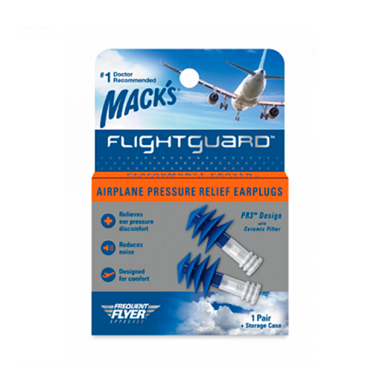 Macks Flightguard Tampões Auriculares permitem que o ouvido se adapte às variações de pressão, estando indicados para viagens de avião. Nível de redução de ruído: 26 dB