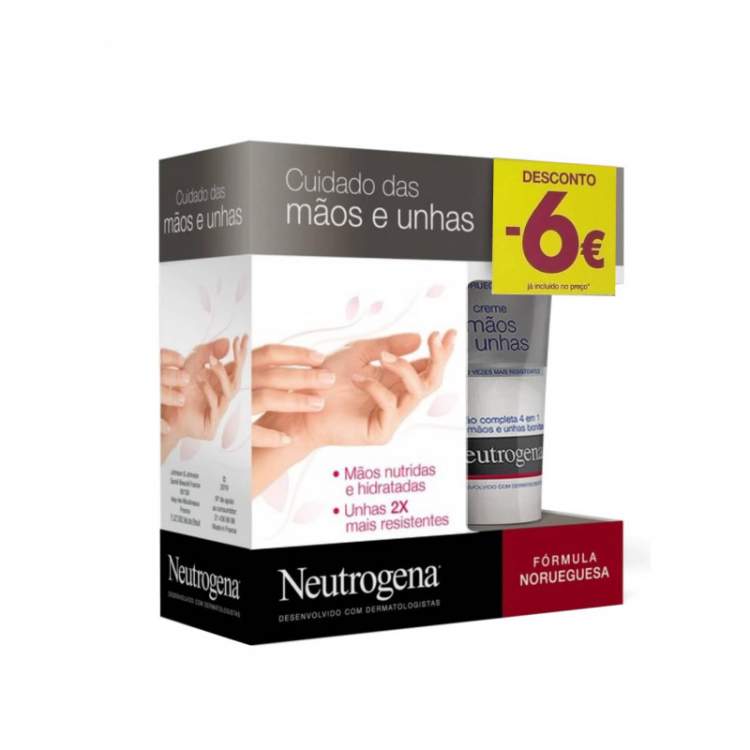 Neutrogena Creme Mãos e Unhas Duo Preço Especial é um pack composto por 2 embalagens de 75ml. Neutrogena Creme Mãos e Unhas é um cuidado hidratante, protetor e suavizante para mãos e unhas.