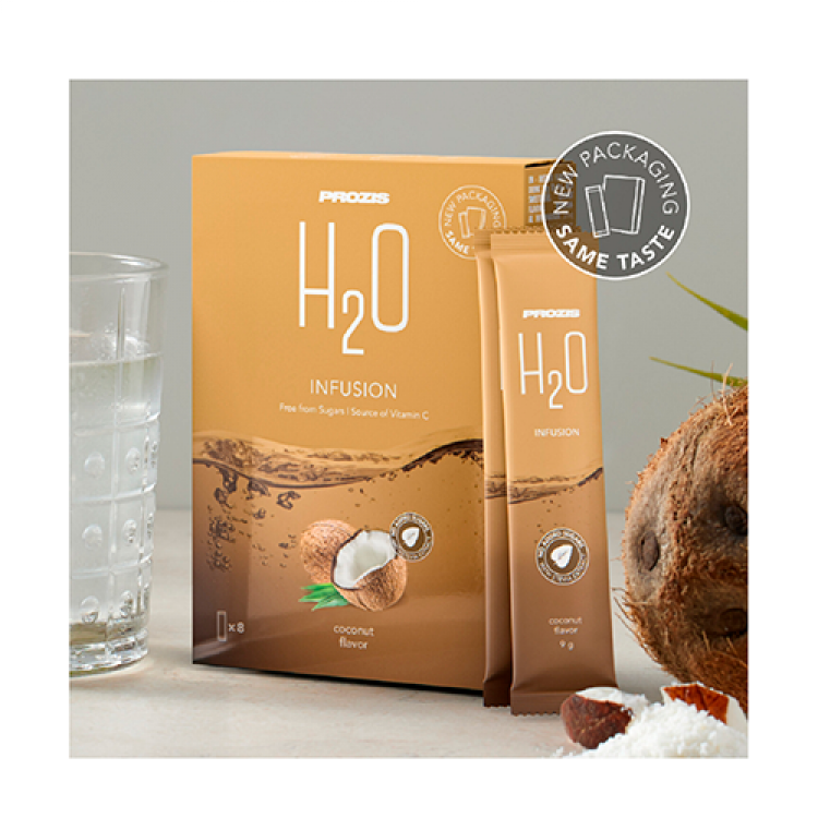 A sua hidratação favorita, enriquecida com vitamina C Qualquer altura é boa para beber água. Mas água com um sabor especial sabe sempre melhor, por isso, é natural que beba mais! Dê um toque frutado à sua água e desfrute da sua rotina diária com a melhor H2O. Uma alternativa divertida e deliciosa! Escolha o seu sabor favorito, enriquecido com vitamina C. Destinado a: - Pessoas ativas; - Atletas; - Pessoas que se preocupam com a sua saúde; - Idosos. A vitamina C tem um papel importante: - Na formação de colagénio para o normal funcionamento da pele; - Na manutenção do normal funcionamento do sistema imunitário; - Na formação de colagénio para funcionamento normal dos vasos sanguíneos; - No metabolismo normal de produção de energia; - Na normal formação de colagénio para normal funcionamento de ossos e cartilagem; - Na formação normal de colagénio para o normal funcionamento de gengivas e dentes; - No normal funcionamento do sistema nervoso e na normal função psicológica; - Na proteção das células contra as oxidações indesejáveis; - Na redução do cansaço e da fadiga; - Na regeneração da forma reduzida da vitamina E. E porque não beber esta água saudável e revigorante em festas, piqueniques e outras ocasiões especiais? É uma ótima alternativa às bebidas açucaradas nas festas das crianças! Ao contrário de outras bebidas solúveis em pó, a Prozis H2O, quando dissolvida em 1,5 L de água, tem 0 g de açúcares! Sabor a coco.