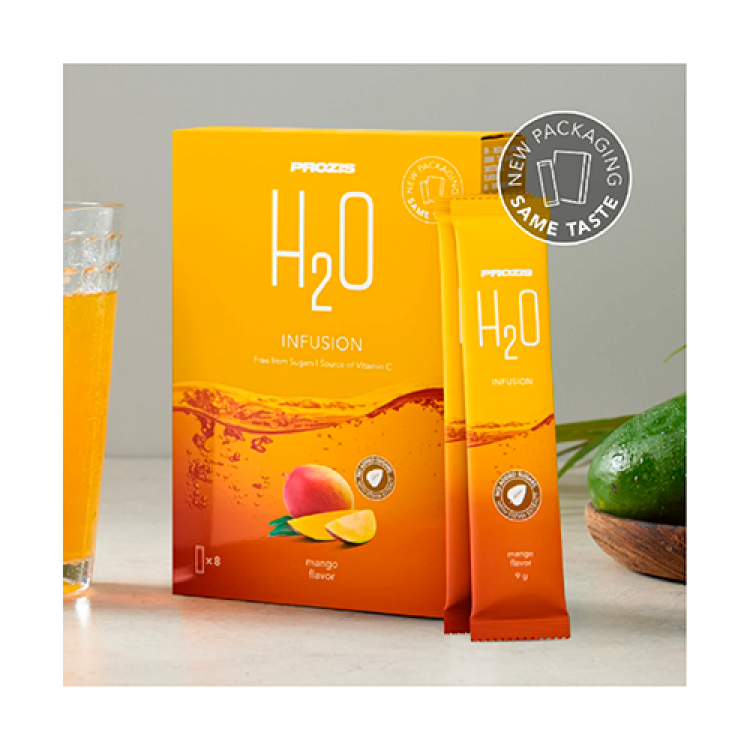 A sua hidratação favorita, enriquecida com vitamina C Qualquer altura é boa para beber água. Mas água com um sabor especial sabe sempre melhor, por isso, é natural que beba mais! Dê um toque frutado à sua água e desfrute da sua rotina diária com a melhor H2O. Uma alternativa divertida e deliciosa! Escolha o seu sabor favorito, enriquecido com vitamina C. Destinado a: - Pessoas ativas; - Atletas; - Pessoas que se preocupam com a sua saúde; - Idosos. A vitamina C tem um papel importante: - Na formação de colagénio para o normal funcionamento da pele; - Na manutenção do normal funcionamento do sistema imunitário; - Na formação de colagénio para funcionamento normal dos vasos sanguíneos; - No metabolismo normal de produção de energia; - Na normal formação de colagénio para normal funcionamento de ossos e cartilagem; - Na formação normal de colagénio para o normal funcionamento de gengivas e dentes; - No normal funcionamento do sistema nervoso e na normal função psicológica; - Na proteção das células contra as oxidações indesejáveis; - Na redução do cansaço e da fadiga; - Na regeneração da forma reduzida da vitamina E. E porque não beber esta água saudável e revigorante em festas, piqueniques e outras ocasiões especiais? É uma ótima alternativa às bebidas açucaradas nas festas das crianças! Ao contrário de outras bebidas solúveis em pó, a Prozis H2O, quando dissolvida em 1,5 L de água, tem 0 g de açúcares! Sabor a manga.