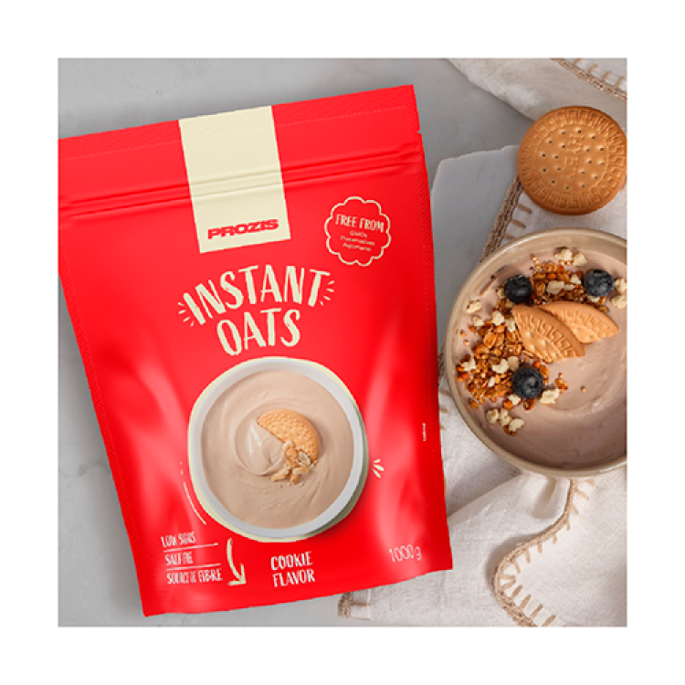 Aveia para todos os momentos Um cereal delicioso e versátil, a aveia tem um perfil nutricional único, apreciado tanto por atletas como por pessoas em dieta. Fornece toda uma gama de nutrientes importantes, como hidratos de carbono de alta qualidade, proteínas importantes para os músculos, fibras, gorduras saudáveis e micronutrientes essenciais. Como fonte de hidratos de carbono, a aveia é do melhor que pode haver. Consumida de manhã, este alimento de digestão lenta e saciante, que é também uma importante fonte de fibra, fornece os hidratos de carbono necessários para o ajudar a manter um corpo bem nutrido e uma mente sagaz durante todo o dia. Quando consumida antes do treino, a aveia tem excelentes benefícios, abrindo caminho para um treino intenso, do princípio ao fim. Fonte estável de energia A aveia é muito apreciada pelo facto de ser digerida lentamente, o que se traduz numa absorção lenta dos hidratos de carbono presentes no cereal e numa fonte estável de energia para o organismo. Por isso é que a aveia é uma fonte popular de energia, tanto para atletas como para todas as pessoas interessadas em cuidar do seu corpo ou em comer de forma saudável. A Aveia Instantânea em Pó da Prozis é um produto puro e não adulterado à base de aveia, que preserva todos os nutrientes desta preciosa fonte de alimento. Esta aveia em pó extremamente prática e repleta de sabor é, definitivamente, um alimento de alto desempenho que deve incluir já na sua dieta, quer queira ganhar massa muscular ou não. Sabor a bolacha. Destaques da Aveia Instantânea da Prozis: - Fonte de energia e fibra; - Ideal para o pequeno-almoço e antes do treino; - Refeição saciante; - Excelente para pessoas ativas e culturistas; - Instantâneo para uma mistura fácil; - Sabores deliciosos.