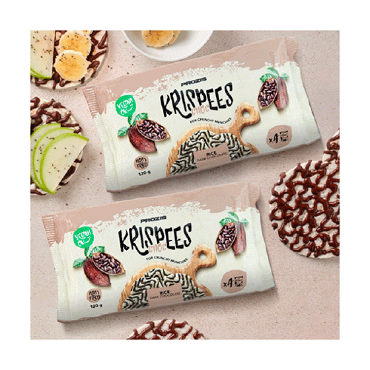 Os cereais, pseudocereais e também as batatas e leguminosas podem ser uma excelente opção para uma alimentação variada e equilibrada. Os Krispees da Prozis fornecem-lhe outra forma prática, consciente e interessante de os ingerires, juntamente com outros alimentos básicos, como pão e cereais de pequeno-almoço. Está sem tempo? Leve alguns destes pacotes práticos de 2 Krispees cada. Deliciosamente compactos e leves, cabem facilmente na sua mala para que possa agarrar num sempre que a fome apertar. Popularizado nos bolos de arroz a partir da década de 80, o arroz tufado praticamente dispensa apresentações. O "efeito pipoca" faz com que cada grão de arroz se assemelhe a um pequeno e leve pedaço de nuvem, enviado dos céus para ser transformado em snacks deliciosos, como os Krispees. Para mais sabor, foram salpicados com delicioso chocolate preto. Imagine o quão maravilhoso será o seu sabor com, por exemplo, algumas rodelas de banana em cima. No entanto, qualquer topping é totalmente opcional, uma vez que o seu sabor é excelente por si só. As ervilhas e lentilhas, favoritas dos vegetarianos, também fazem parte da receita. As ervilhas são uma excelente escolha para aumentar o conteúdo proteico. Além do sabor, as ervilhas fornecem proteína vegetal de qualidade e, por outro lado, também te dão aquela crocância característica dos Krispees. Enquanto leguminosas mais antigas do mundo, as lentilhas alimentaram a humanidade durante mais de dez mil anos. Com um sabor único, e oferecendo uma cor e um valor nutricional excelentes em vários pratos, são um ingrediente fantástico neste tipo excecional de Krispees. Adequado para vegans Apenas são utilizados ingredientes de origem não animal na produção destes Krispees. Tal significa que são 100% adequados para vegetarianos e também para vegans.