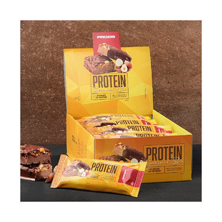 Prozis Protein Gourmet Bar - Barra de Chocolate de Leite, Caramelo e Avelã