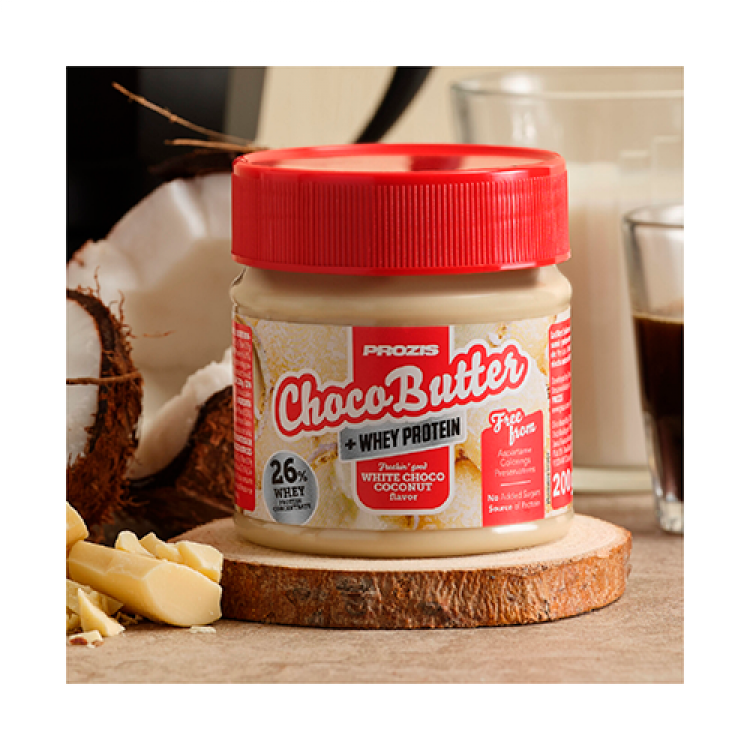 Há algo melhor do que um creme de barrar de chocolate branco e coco sobre a sua fatia de pão? Deliciosa tentação que torna as suas pausas para snacks em momentos inesquecíveis. o Com adição de proteína whey; o Fonte de proteína; o Sem óleo de palma; o Vegetariano; o Sem aspartame; o Sem corantes; o Sem conservantes; o Sem OGM; o Sem açúcares adicionados (Contém açúcares naturalmente presentes).