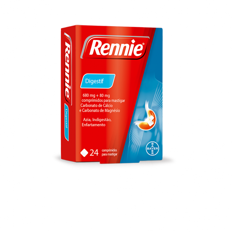 Rennie® pastilhas é um antiácido que alivia rápida e eficazmente os sintomas de azia e indigestão. Não recorre a fórmulas químicas complexas para acabar com o seu desconforto - a simplicidade é a chave. Rennie® contém duas substâncias que existem na natureza, o carbonato de cálcio e o carbonato de magnésio, que atuam localmente no estômago, transformando o excesso de ácido em água e outras substâncias naturais: - Carbonato de cálcio, efeito quase imediato - Carbonato de magnésio, efeito retardador, prolongando a ação do medicamento A sua ação conjunta neutraliza rapidamente o excesso de ácido no estômago, proporcionando um alívio suave e eficaz dos sintomas.