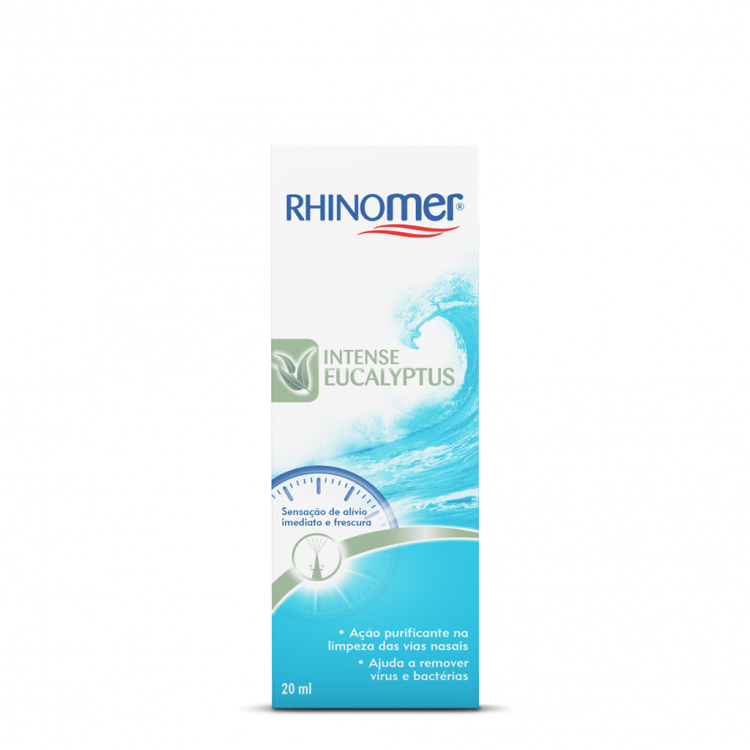 Rhinomer Intense Eucalyptus é um spray nasal sem conservantes contendo água do mar natural hipertónica combinada com óleo essencial de eucalipto e extrato de hortelã. A solução não diluída retém a riqueza de todos os minerais importantes e microelementos contidos na água do mar, como cálcio, magnésio, ferro e zinco. Rhinomer Intense Eucalyptus é um descongestionante nasal natural intenso que proporciona um alívio eficaz e natural da congestão nasal, devido a contipações e rinossinusites; ajuda a prevenir o aparecimento de novas infeções devido à ação purificadora que limpa as passagens nasais e porque ajuda a eliminar as bactérias e vírus presos no muco do nariz; proporciona uma sensação imediata de alívio e frescura; tem um efeito anti-secura, hidratando as cavidades nasais.