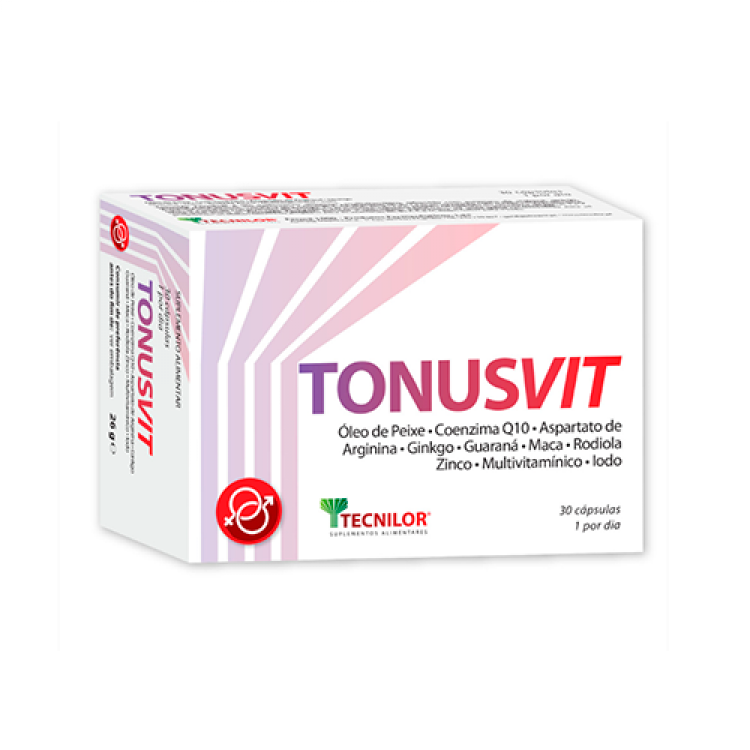 O TonusVit Tecnilor é um suplemento alimentar com Óleo de Peixe, Vitamina E, C, Coenzima Q10, Aspartato de Arginina, Ginkgo, Guaraná, Maca e Rodiola. É complementado ainda com Zinco, Vitamina B6, A, B9, D3, B12 e Iodo.
