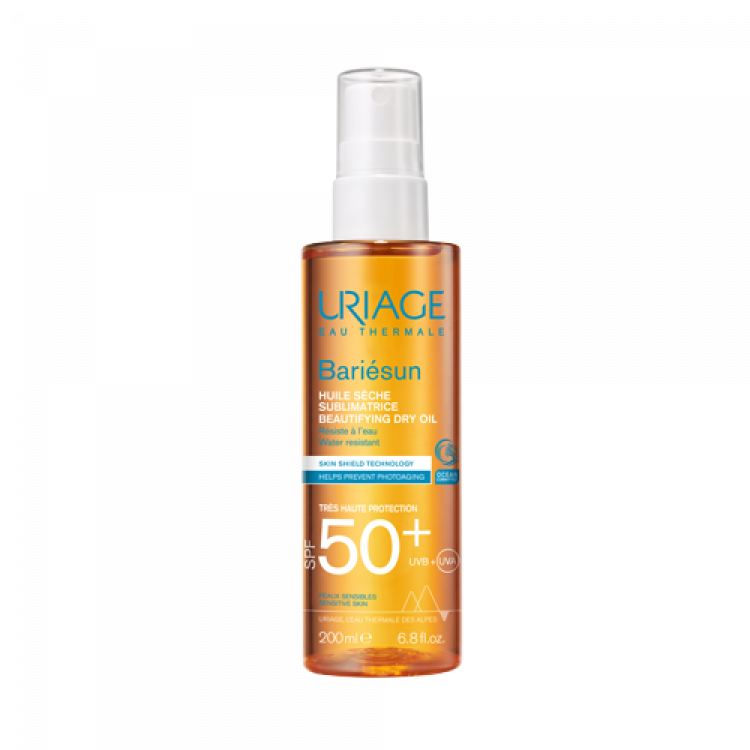 Bariésun combina um complexo filtrante com elevada eficácia e duas patentes dermatológicas para proteger a pele e prevenir os danos celulares provocados pelos raios UVA e UVB e pela luz azul. Com uma textura agradável, não oleosa, Bariésun Óleo Seco SPF50+ suaviza a pele e ilumina o bronzeado. Também pode ser aplicado no cabelo para o proteger da secura e preservar a sua beleza natural. Proteção contra os raios UV O seu complexo de filtros de última geração assegura uma proteção muito elevada contra os raios UV. Cuidados com uma fotoestabilidade comprovada e uma cobertura alargada UVB-UVA. Fotoproteção elevada A patente [BARIÉSUN] forma um filme protetor na pele para limitar a penetração dos filtros UV na superfície da epiderme e otimizar a fotoproteção. Ação hidratante Enriquecido com Aquaspongines, oferece proteção elevada contra a desidratação e tem uma ação antioxidante.