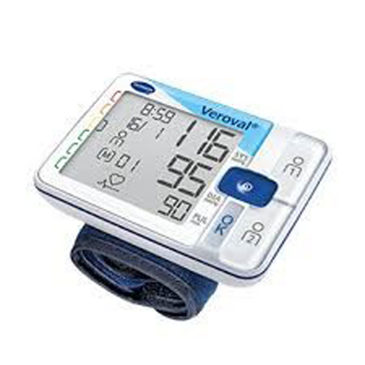 O monitor de tensão arterial Veroval Wrist é um produto que ajuda na detecção de arritmias. Tem um grande ecrã de visualização e um semáforo de visualização dos resultados. Tem uma verificação visual da posição para determinar a posição de medição ao nível do coração.